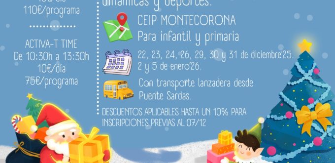 *ESCUELA NAVIDEÑA DE ÁREA ACTIVA*Queridas familias os presentamos la *Escuela Navideña* que organizamos con *Área Activa* los próximos *días no lectivos* del periodo de Navidad y Reyes.Un montón de *talleres, manualidades y grandes juegos para grandes y peques*_Siempre que el número de participantes lo permita, organizaremos dos grupos por edades para que cada niño/a encuentre […]