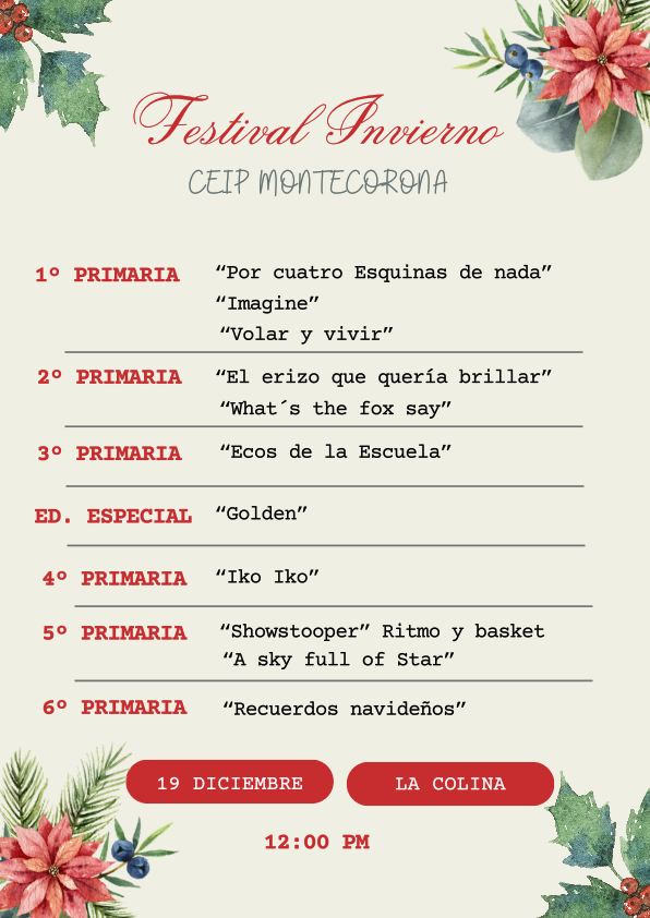 Buenos días, aquí tenéis las actuaciones del Festival de Invierno 2025, ¡esperamos que las disfrutéis! Pasad Buenas Fiestas, nos vemos el 7 de enero